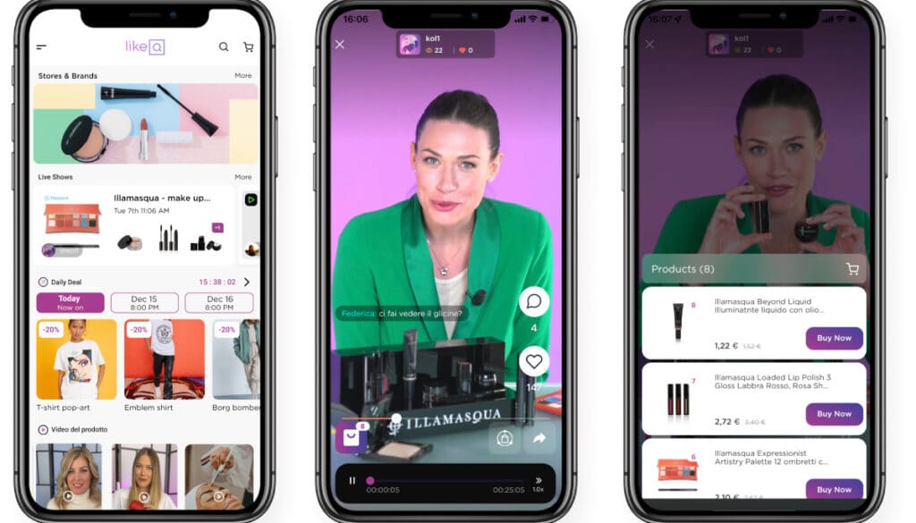 “likeQ verrà implementata gradualmente in tutte le sue funzionalità”, conclude Penati. “Si parte oggi con uno show dal vivo quotidiano per arrivare per step successivi a cinque e poi a dieci show diversi, per i vari brand, che verranno riassunti e presentati quotidianamente sulla app stessa. Anche i prodotti potranno essere diversi da quelli già ospitati sul canale tv e sull’eCommerce: non solo edizioni esclusive e versioni speciali, ma anche brand che faranno il loro debutto nel livestreaming commerce proprio su likeQ”.