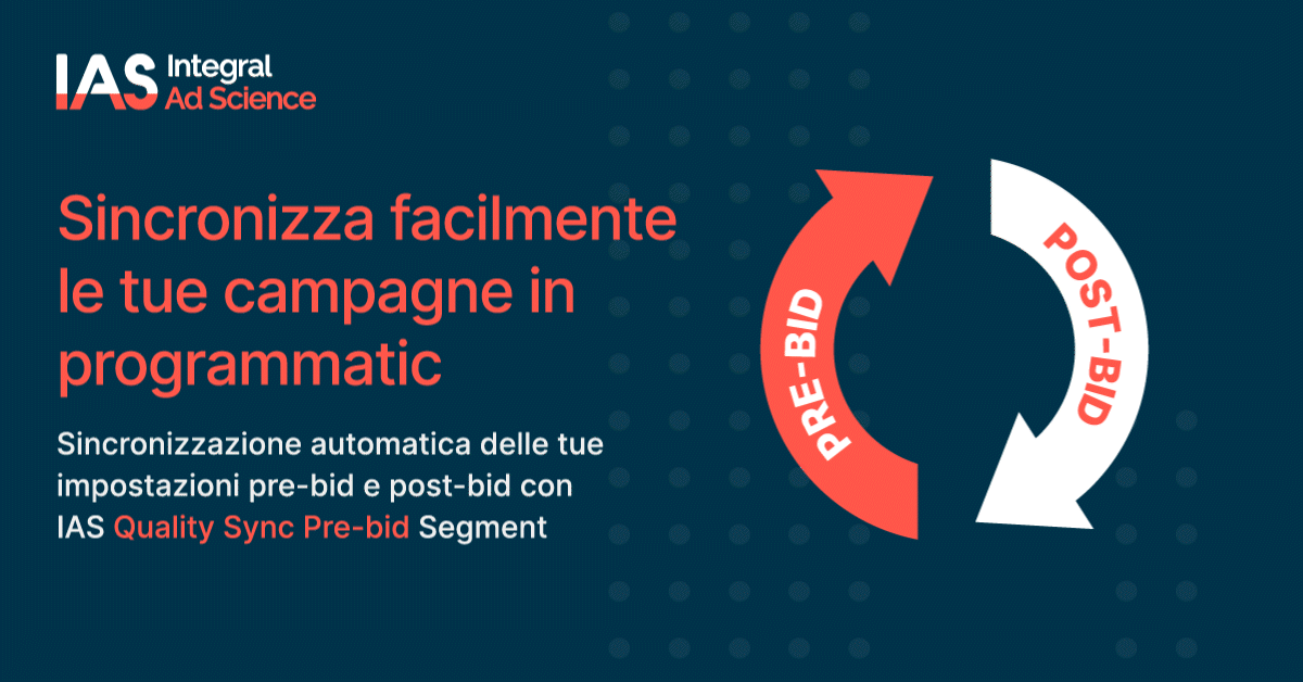 La soluzione ‘IAS Quality Sync Pre-bid Segment’ riduce i block rate e i tempi di attivazionedelle campagne pubblicitarie per ottimizzare ulteriormente la media quality digitale