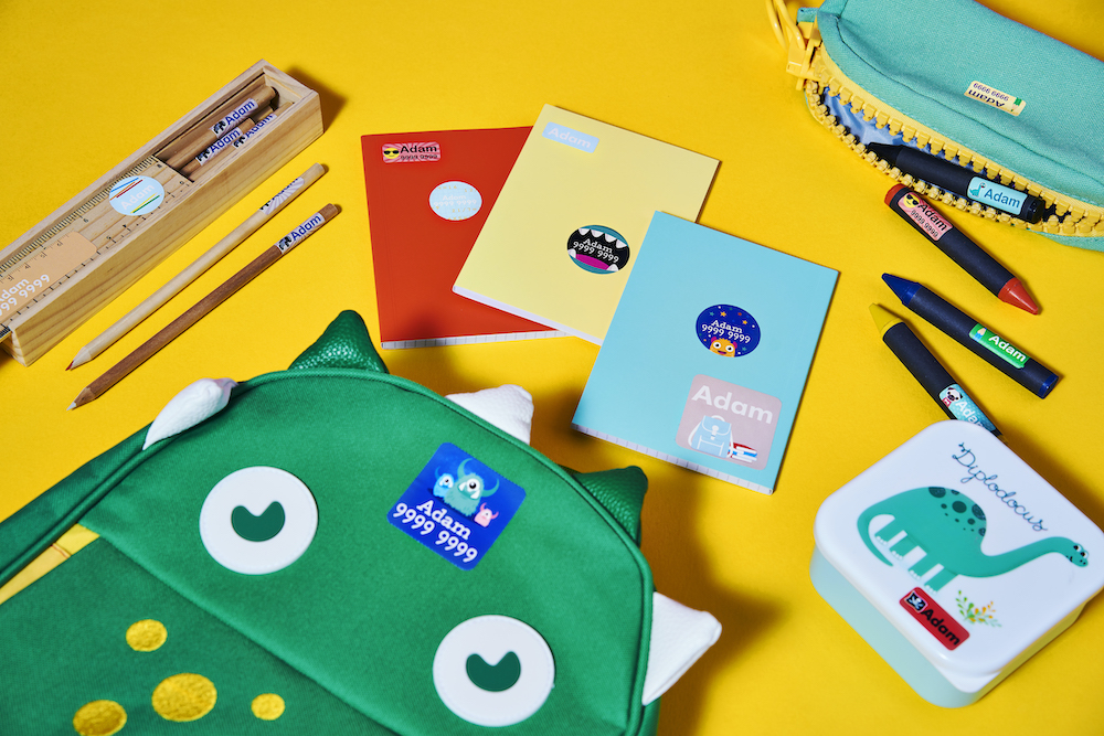 Sono due le tipologie di articoli principali dell’offerta, gli adesivi con nome e le etichette con nome da stirare. I prodotti possono essere personalizzati con una serie di icone, sfondi e caratteri colorati.